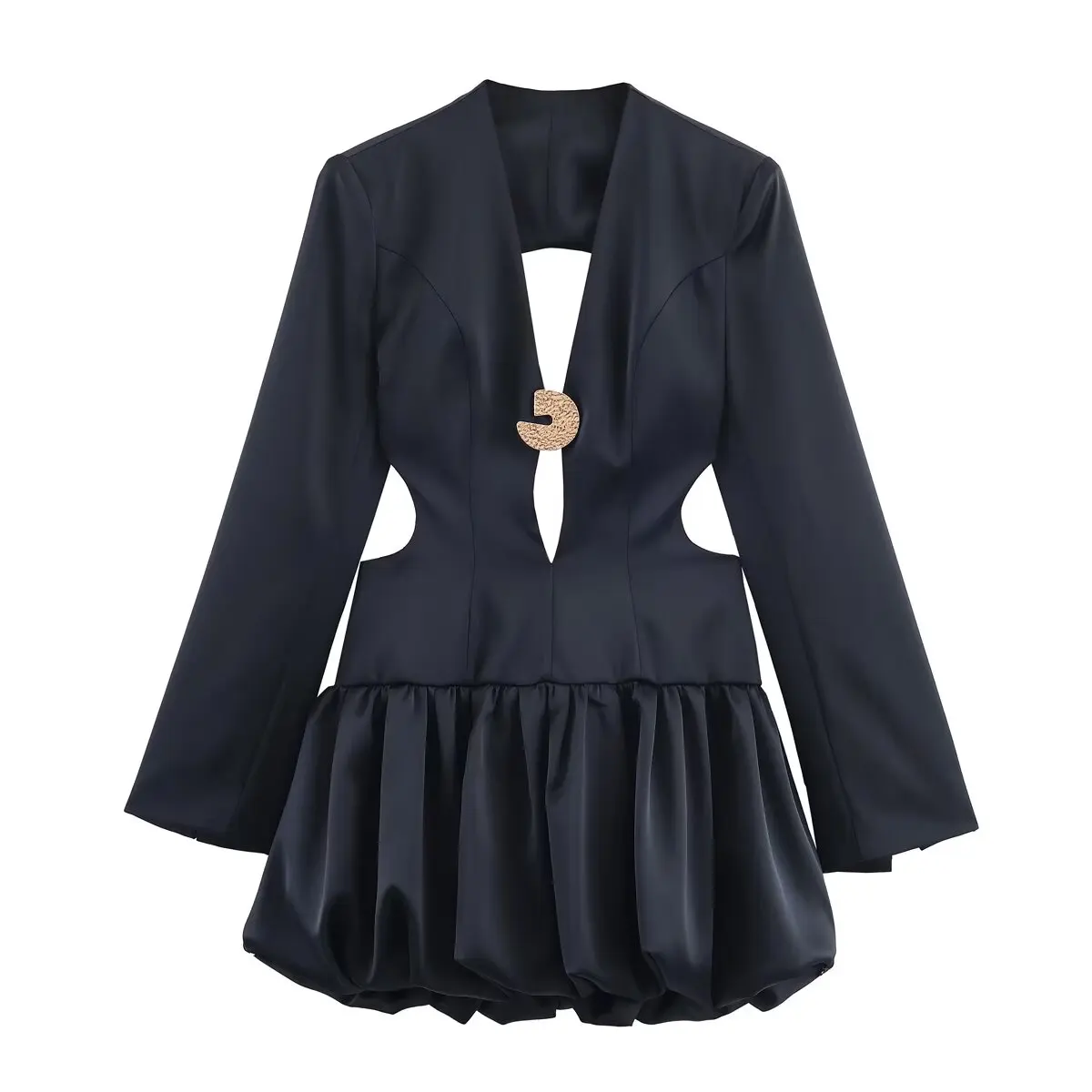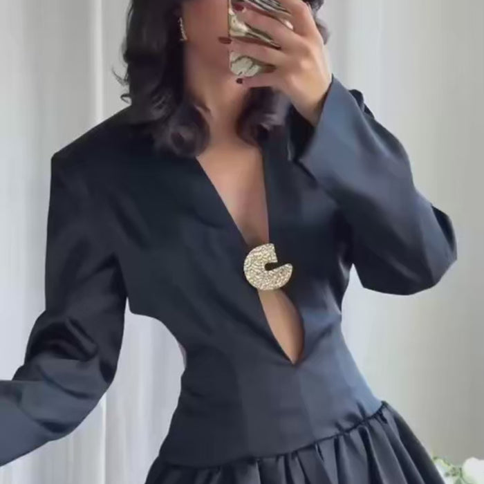 Obsidian Whisper V-Neck Dress