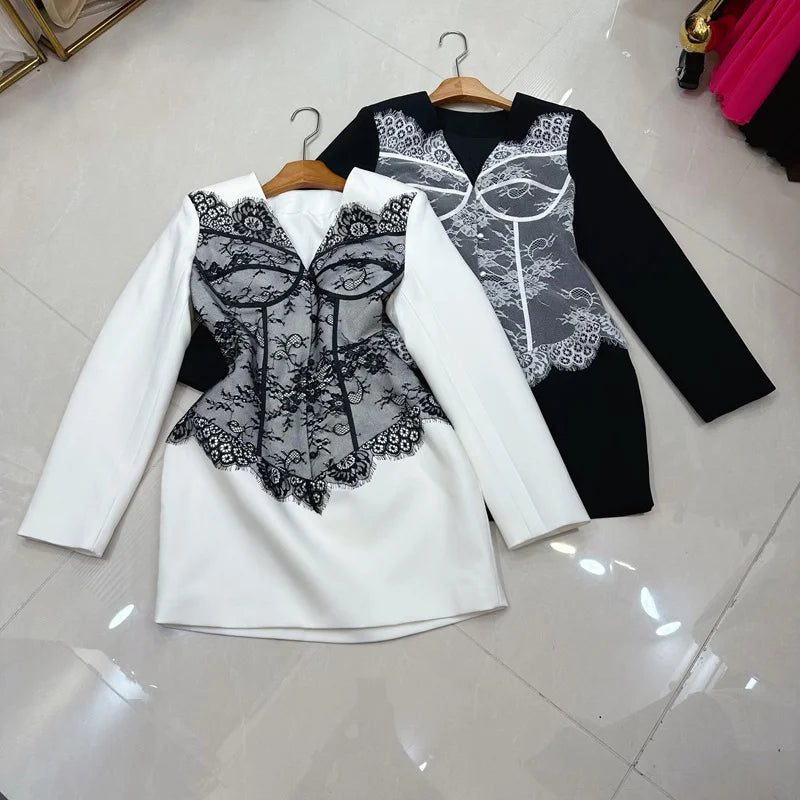 The Silver Wren Lace Mini Dress is an elegant long-sleeve mini designed for women who want a refined, feminine, and polished look for parties, dinners, and special events. Crafted from smooth polyester lace, this dress features delicate detailing that creates a soft, textured appearance while maintaining breathable comfort.