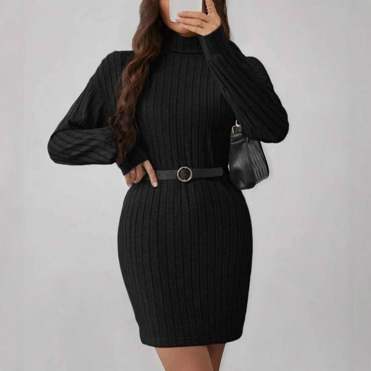 Women's Sunken Stripe Fleece Turtleneck Slim Dress