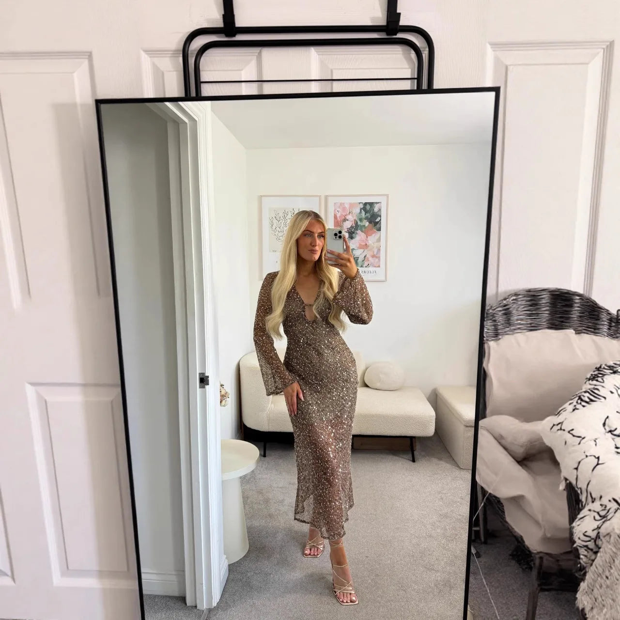 Shimmering sequin detailing with sheer accents