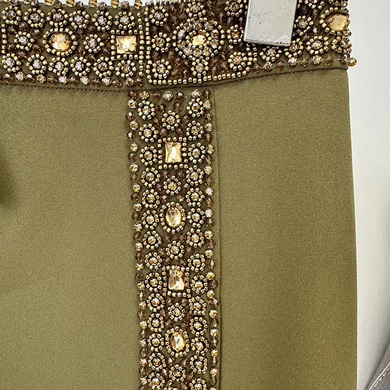 The Azure Mirage Crystal Two-Piece Set is designed for modern summer occasions. This halter-neck crop top and matching full-length skirt create a polished, streamlined look with a soft satin finish. Subtle crystal beading adds a refined touch, while the lightweight spandex-polyester blend offers breathable comfort in warm weather.