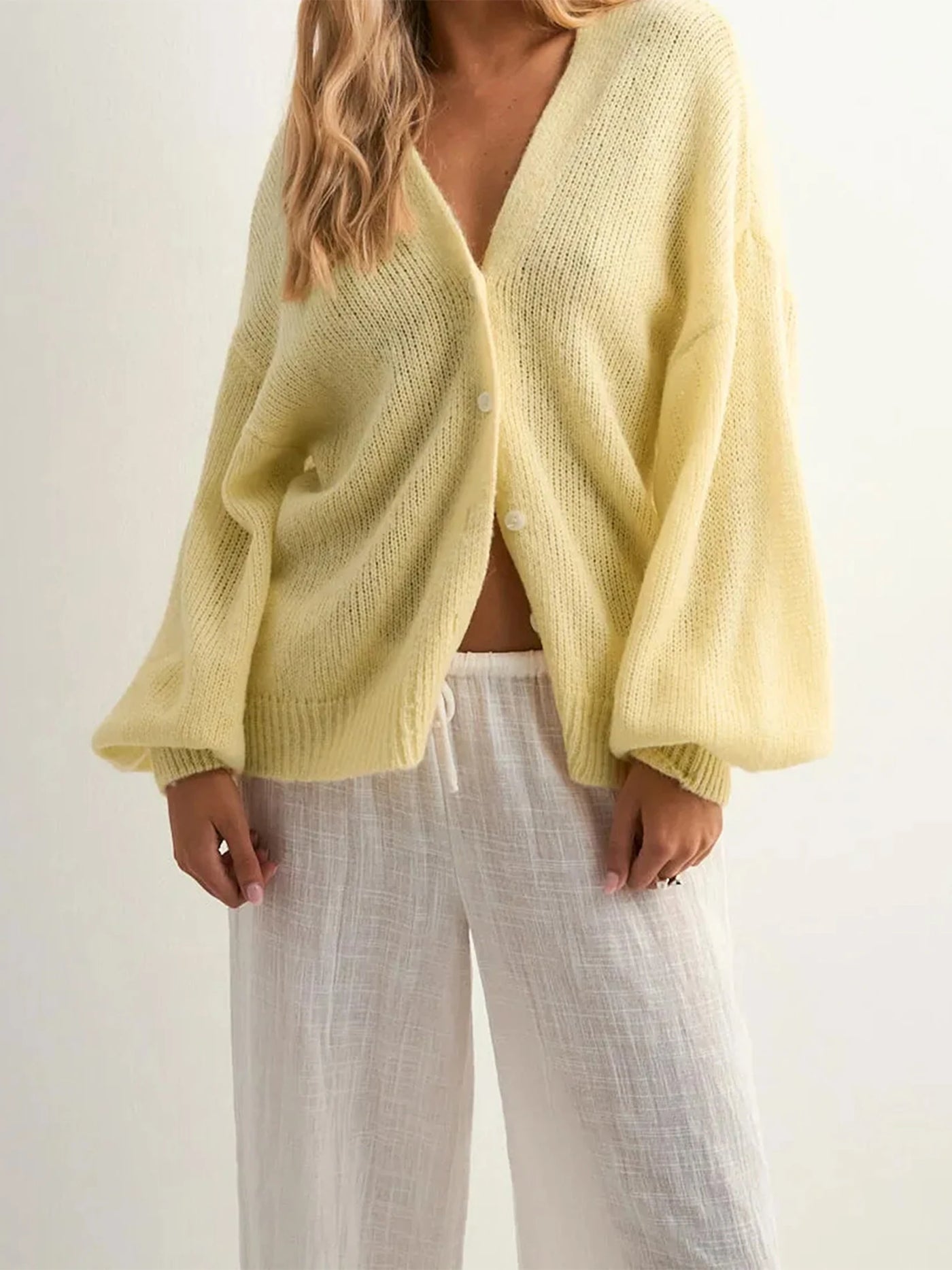 Elevate your wardrobe with this Stylish Women’s Long Sleeve V-Neck Button-Down Knit Cardigan. Crafted from 100% polyester, this medium-weight sweater features a loose fit, full-length sleeves, and a classic button-down design. Its solid color and fine knit construction make it versatile for everyday wear, layering, or casual outings. Perfect for spring, autumn, or winter, this trendy cardigan combines comfort and effortless style.